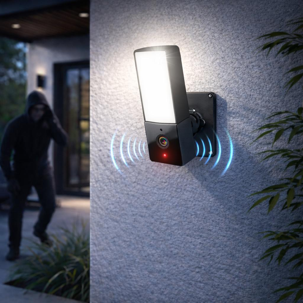 ENGO ECAM-L1 – Cameră inteligentă de exterior cu LED, 4MP QHD, audio bidirecțional și vizibilitate nocturnă avansată