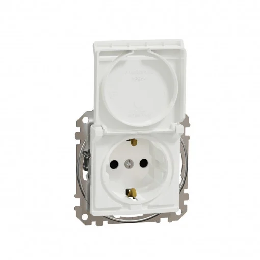 Priza simpla cu impamantare, cu capac, 16A, IP20, Alb Schneider Sedna Design
